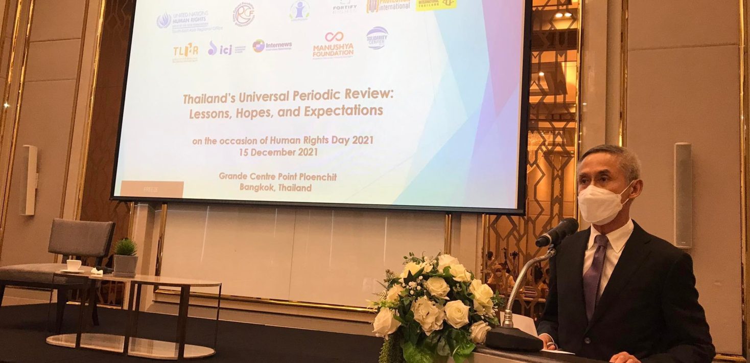 ซึ่งกล่าวในงานเสวนาเรื่อง “การทบทวนสิทธิมนุษยชนของประเทศไทยโดยกระบวนการ Universal Periodic Review: บทเรียน ความหวัง และความคาดหวัง” เนื่องในโอกาสวันสิทธิมนุษยชนสากล ประจำปี 2564 ที่ร่วมจัดโดย สำนักงานข้าหลวงใหญ่เพื่อสิทธิมนุษยชนแห่งสหประชาชาติ สำนักงานภูมิภาคเอเชียตะวันออกเฉียงใต้ ร่วมกับ แอมเนสตี้ อินเตอร์เนชั่นแนล ประเทศไทย มูลนิธิศูนย์ข้อมูลชุมชน มูลนิธิผสานวัฒนธรรม องค์กร Fortify Rights คณะกรรมการนิติศาสตร์สากล องค์กร Internews มูลนิธิมานุษยะ องค์กร Protection International องค์กร Solidarity Center และศูนย์ทนายความเพื่อสิทธิมนุษยชน