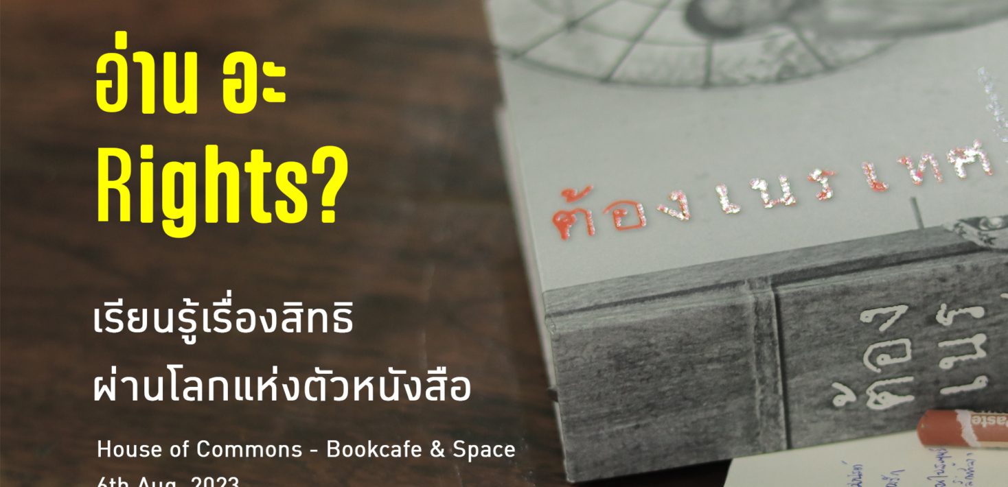 วันอาทิตย์ที่ 6 สิงหาคมที่ผ่านมา แอมเนสตี้ อินเตอร์เนชั่นแนล ประเทศไทย จึงจัดกิจกรรม อ่าน อะ Rights? ณ คาเฟ่อันแสนสงบในย่านเจริญกรุง House of Commons – Bookcafe & space เพื่อเชิญชวนให้เหล่านักอ่านที่มีความสนใจในประเด็นสิทธิมนุษยชนร่วมแบ่งปันประสบการณ์ของตัวเอง ผ่านหนังสือเล่มโปรดที่แต่ละคนมีอยู่แล้ว
