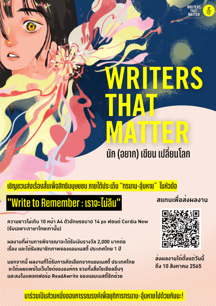 โครงการ Writers that Matter “นัก(อยาก)เขียน เปลี่ยนโลก” กลับมาอีกครั้ง! กับการประกวดเรื่องสั้น ในหัวข้อ “Write to Remember : เราจะไม่ลืม” ส่งผลงานได้ตั้งแต่วันนี้ – 10 สิงหาคม 2565
