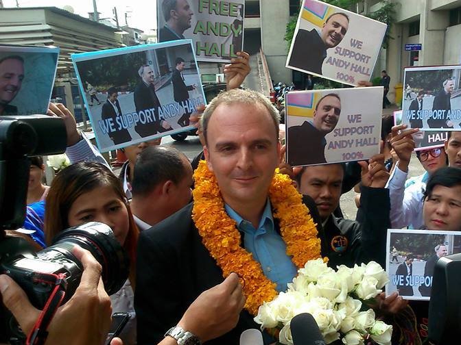 ตัวแทน แอมเนสตี้ อินเตอร์เนชั่นแนล แสดงความเห็นภายหลังศาลอาญากรุงเทพใต้มีคำพิพากษาว่า “อานดี้ ฮอลล์” (Andy Hall) นักปกป้องสิทธิแรงงานข้ามชาติชาวอังกฤษมีความผิดฐานหมิ่นประมาทและความผิดทางคอมพิวเตอร์ต่อ “บริษัท เนเชอรัลฟรุต จำกัด” จากการจัดทำรายงานที่ระบุว่าบริษัทดังกล่าวละเมิดสิทธิมนุษยชนแรงงานข้ามชาติอย่างกว้างขวาง ต้องโทษจำคุกสามปี รอลงอาญาสองปี และปรับอีก 150,000 บาท
