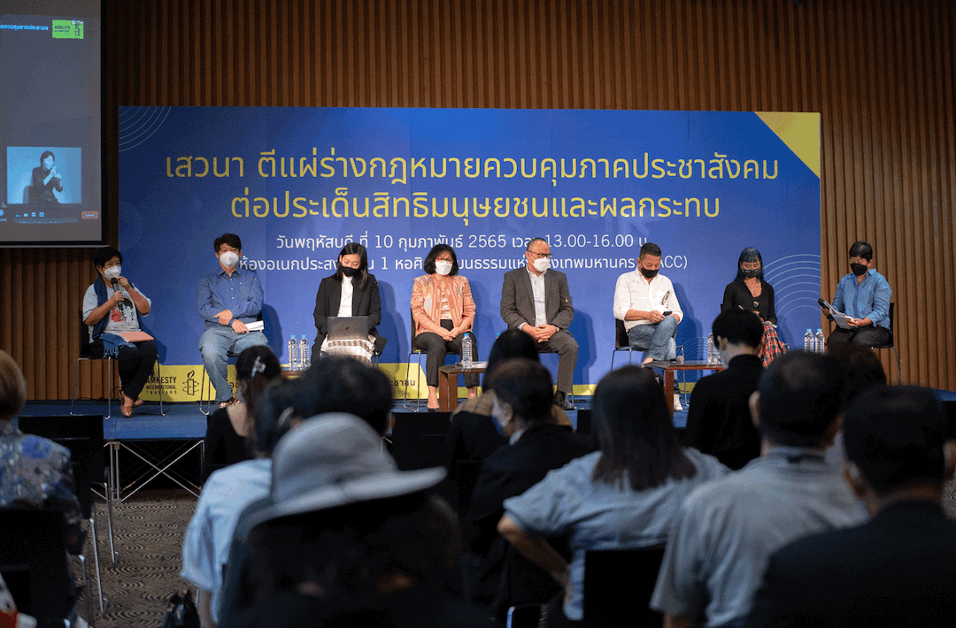 วันที่ 10 กุมภาพันธ์ที่ผ่านมา แอมเนสตี้ อินเตอร์เนชั่นแนล ประเทศไทยและเครือข่ายคัดค้านร่างกฎหมายควบคุมภาคประชาชน จัดงานเสวนา ‘ตีแผ่ร่างกฎหมายควบคุมภาคประชาสังคมต่อประเด็นสิทธิมนุษยชนและผลกระทบ’ ภายหลังคณะรัฐมนตรีมีมติเห็นชอบหลักการร่างพระราชบัญญัติการดำเนินกิจกรรมขององค์กรไม่แสวงหากำไร พ.ศ. ….ที่สํานักงานคณะกรรมการกฤษฎีกาเสนอ ว่าด้วยการดูแล ควบคุมการดําเนินงานขององค์กรที่ไม่แสวงหารายได้หรือกําไรมาแบ่งปันกัน ซึ่งจะส่งผลต่อการรวมกลุ่มในทุกรูปแบบ ไม่ว่าชมรมหรือมูลนิธิเนื่องจากนิยามของร่างกฎหมายค่อนข้างกว้าง ทั้งการบังคับใช้กฎหมายยังขึ้นกับดุลยพินิจของเจ้าหน้าที่ ดังนั้น จึงเป็น พ.ร.บ. ที่น่ากังวลพอสมควรโดยเฉพาะในประเด็นสิทธิมนุษยชน