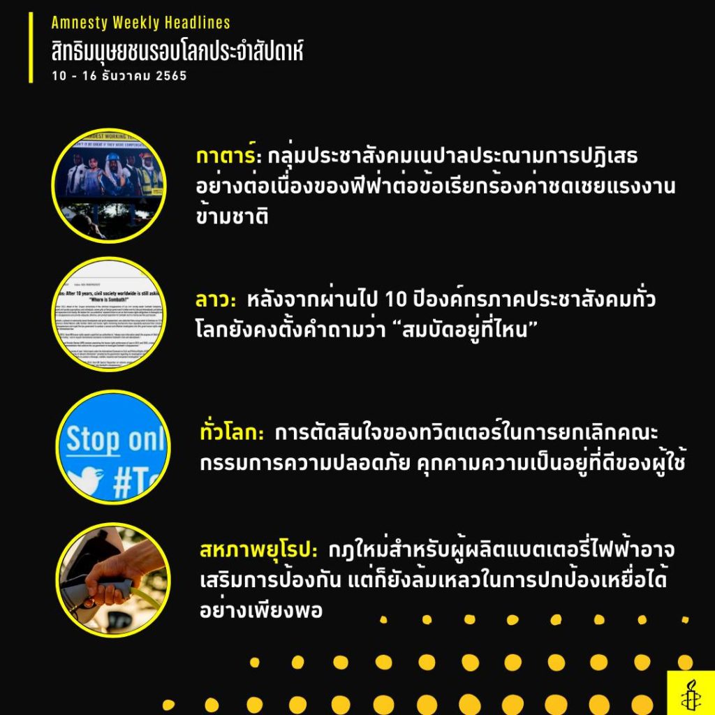 ก่อนครบรอบ 10 ปีของการบังคับให้สูญหายของ สมบัด สมพอน ผู้นำประชาสังคมของลาว องค์กรภาคประชาสังคมและบุคคลที่มีชื่อด้านล่างขอเรียกร้องอีกครั้งให้รัฐบาลลาวระบุชะตากรรมและที่อยู่ของเขา และมอบความยุติธรรม ความจริง และการชดเชยแก่ครอบครัว เรารู้สึกเสียใจกับความล้มเหลวซ้ำแล้วซ้ำเล่าของทางการลาวในการดำเนินการตามพันธกรณีด้านสิทธิมนุษยชนในการตรวจสอบการหายตัวไปของสมบัดอย่างละเอียดและมอบการชดเชยที่เพียงพอ มีประสิทธิภาพ และโดยทันทีแก่สมบัดและครอบครัวสำหรับช่วงสิบปีที่ผ่านมา