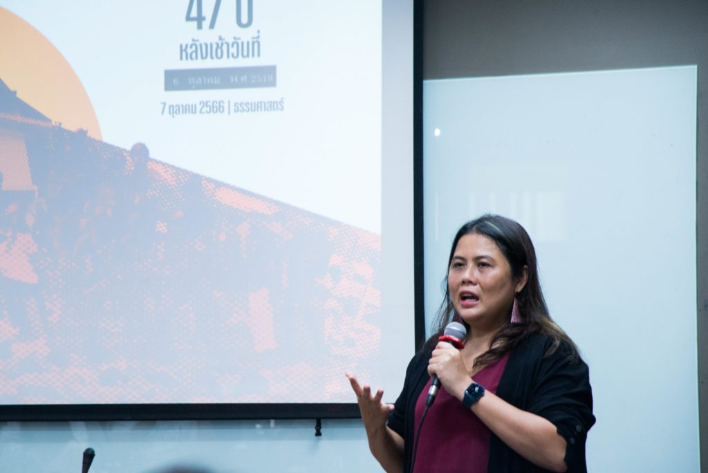 “ถ้าจิตวิญญาณคนที่อยู่ในเหตุการณ์นั้นมีจริง ไม่รู้ว่าเขาเห็นความเคลื่อนไหวของพวกเราทุกวันนี้เป็นอย่างไร แต่ว่าวันนี้เมื่อ 47 ปีที่แล้ว ไม่ว่าใครก็ตามที่จะพยายามกลบ หรือทำให้ความจริงที่เกิดขึ้นถูกลบเลือน ไม่ว่าจะเป็นด้วยอคติ หรือการโฆษณาชวนเชื่อ แอมเนสตี้ยืนยันจะยังมองหาความจริงต่อสู้เพื่อความยุติธรรม เราพยายามทำงานเพื่อไม่ให้เกิดเหตุการณ์แบบนี้ซ้ำรอย คือการทำให้ทุกคนมีความเคารพศักดิ์ศรีความเป็นมนุษย์ ด้วยการให้ความรู้ความเข้าใจเรื่องสิทธิมนุษยชนร่วมกัน ผ่านกิจกรรมรณรงค์ต่างๆ เช่น แคมเปญปล่อยเพื่อนเรา เขียนจดหมายถึงเพื่อนที่อยู่ในเรือนจำ รวมทั้งการให้ความรู้ผ่านห้องเรียนสิทธิมนุษยชน ทำข้อเสนอเชิงนโยบายถึงหน่วยงานของรัฐ และส่งเสริมประเด็นการสื่อสารผ่านสื่อออนไลน์ หนังสือพิมพ์ โทรทัศน์ เรายืนยันจะทำให้เรื่องสิทธิมนุษยชนเป็นเรื่องของทุกคนต่อไป”