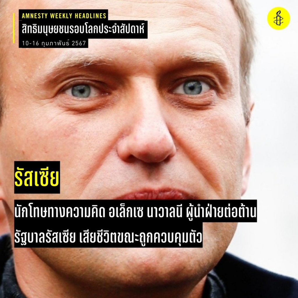 แอกเนส คาลามาร์ด เลขาธิการแอมเนสตี้ อินเตอร์เนชั่นแนล เผยว่า หลังจากถูกวางยาพิษ จำคุกอย่างไม่ยุติธรรม และถูกทรมานในเรือนจำ อเล็กเซ นาวาลนี เสียชีวิตหลังจากทุกข์ทรมานอยู่ในเรือนจำนาน 37 เดือน และถูกส่งตัวไปยังเรือนจำที่ห่างไกลและโหดร้ายที่สุดแห่งหนึ่งของรัสเซีย อเล็กเซเป็นนักโทษทางความคิดที่ถูกจำคุกเพียงเพราะพูดต่อต้านรัฐบาลที่กดขี่