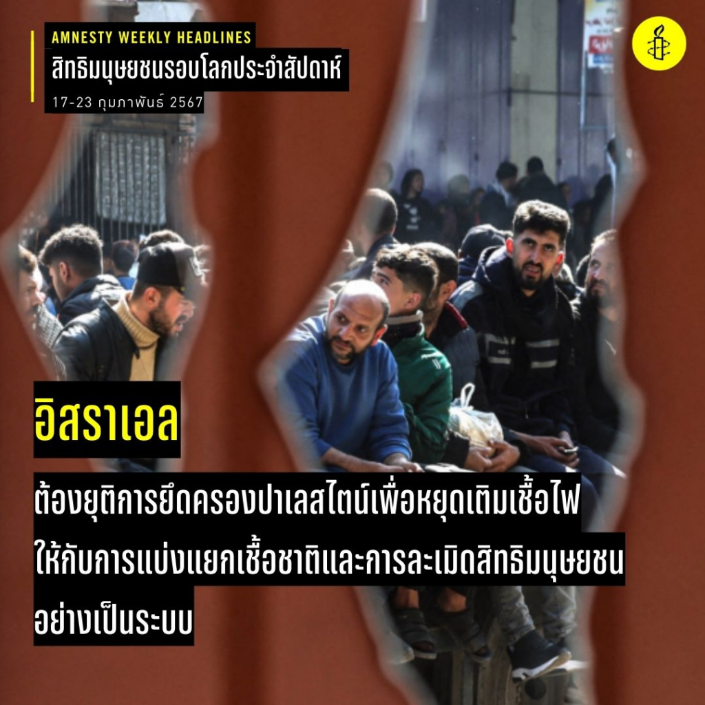 อิสราเอลจะต้องยุติการยึดครองอย่างโหดร้ายในฉนวนกาซาและเวสต์แบงก์ รวมถึงเยรูซาเลมตะวันออก ซึ่งยึดครองมาตั้งแต่ปี 2510 แอมเนสตี้ อินเตอร์เนชั่นแนลกล่าวในขณะที่ศาลยุติธรรมระหว่างประเทศ (ICJ) เริ่มการพิจารณาคดีเพื่อตรวจสอบผลทางกฎหมายของการยึดครองที่ยืดเยื้อของอิสราเอล