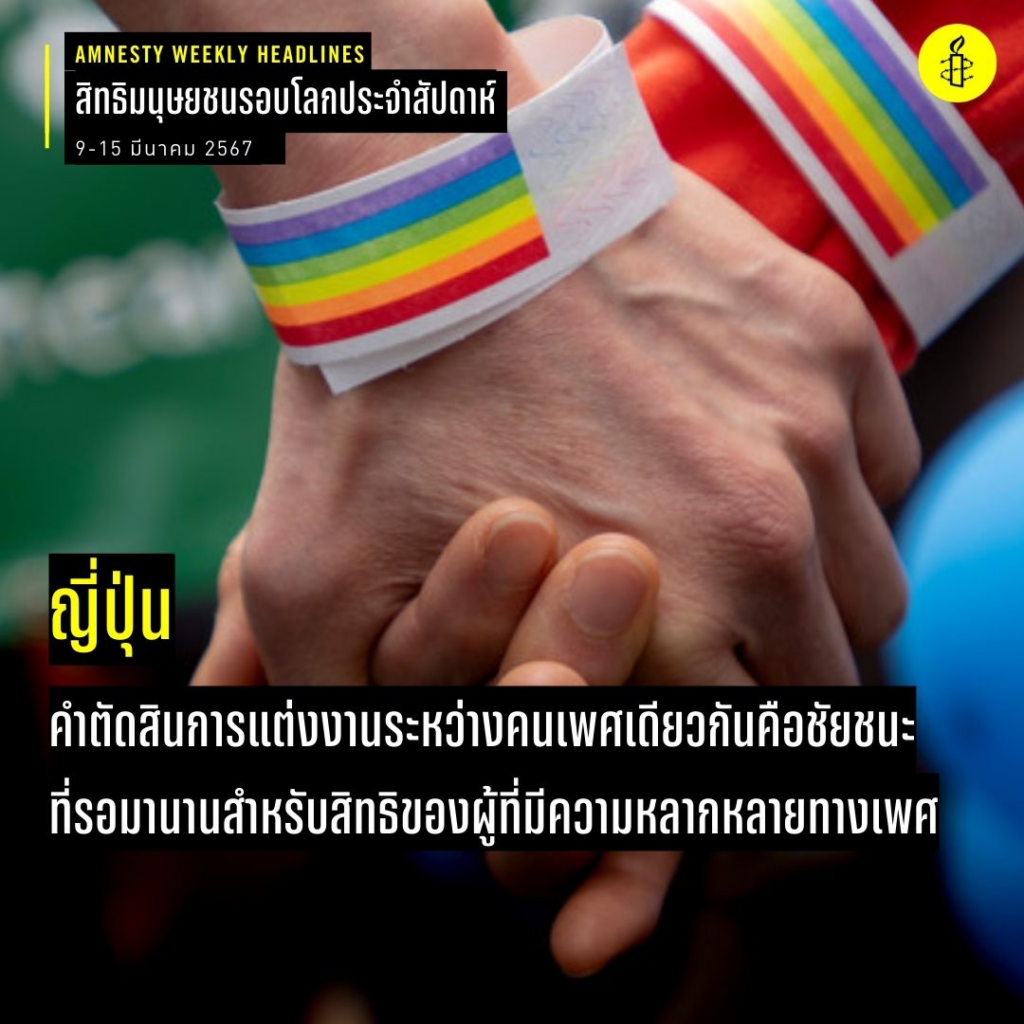 “กฎหมายที่รัฐบาลผ่านเมื่อปีที่แล้วเพื่อ ‘ส่งเสริมความเข้าใจ’ เกี่ยวกับผู้ที่มีความหลากหลายทางเพศยังไม่เพียงพอ จำเป็นต้องมีมาตรการทางกฎหมายที่เป็นรูปธรรมเพื่อปกป้องคู่รักเพศเดียวกันและชุมชนผู้ที่มีความหลากหลายทางเพศในญี่ปุ่นจากการเลือกปฏิบัติทุกรูปแบบ”